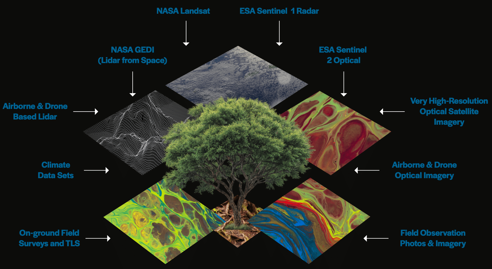 These inputs include satellite imagery, airborne sensors, climate data and on ground observations to create a detailed multidimensional view of ecosystems through time.